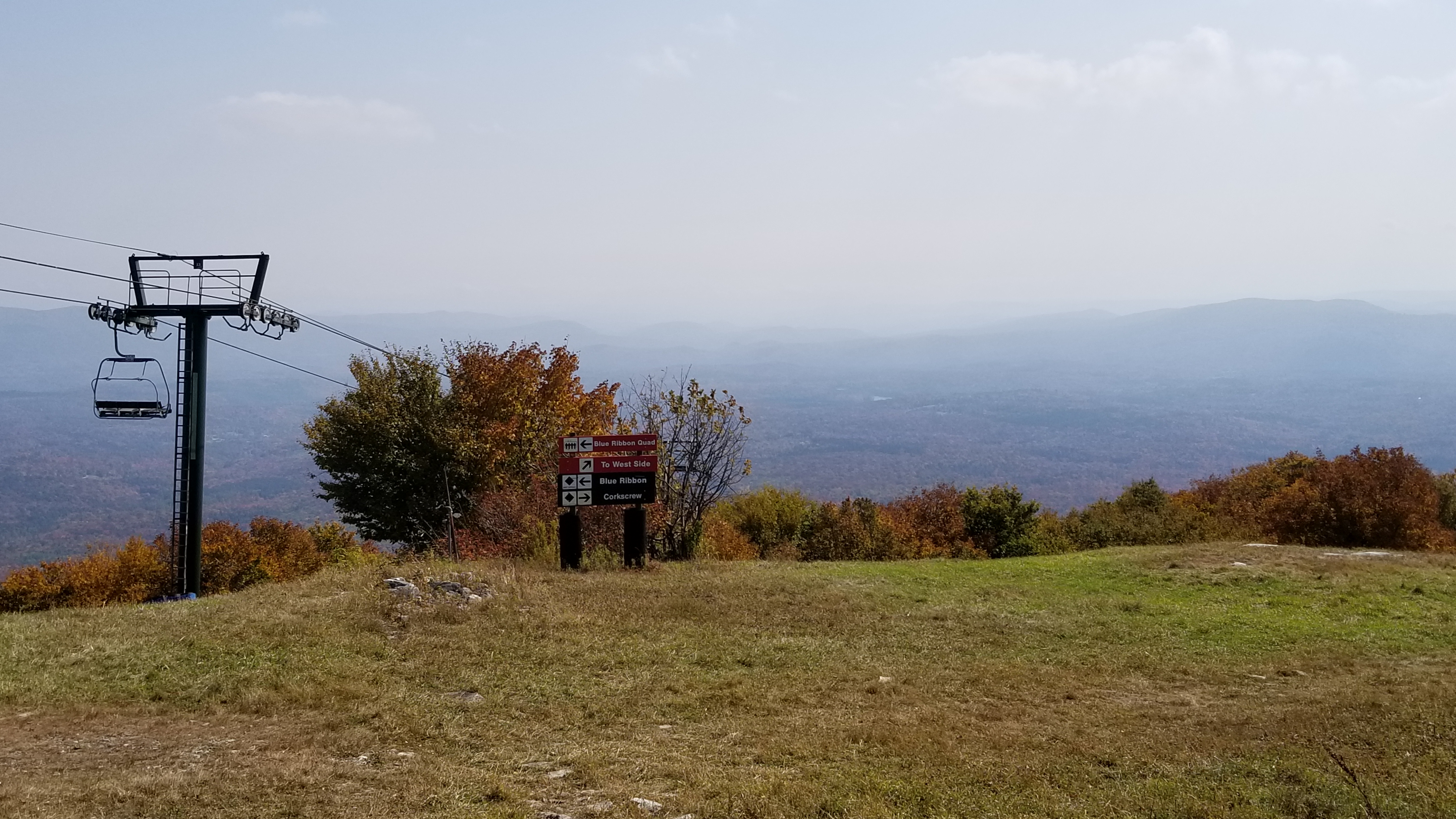 The trail was wide and well-worn all the way to the summit. It went over easy grades for the first couple of miles, about until it came to Bromley Shelter (down a spur trail). The grade then increased somewhat, although still not very steeply, until another short spur trail lead to an overlook. Not far above the overlook, the trail came to the top of one of the Bromley Mountain ski trails with open views. It followed the ski trail to the summit where a warming hut and other trappings of the ski area could be found. From the summit there were decent views in all directions.