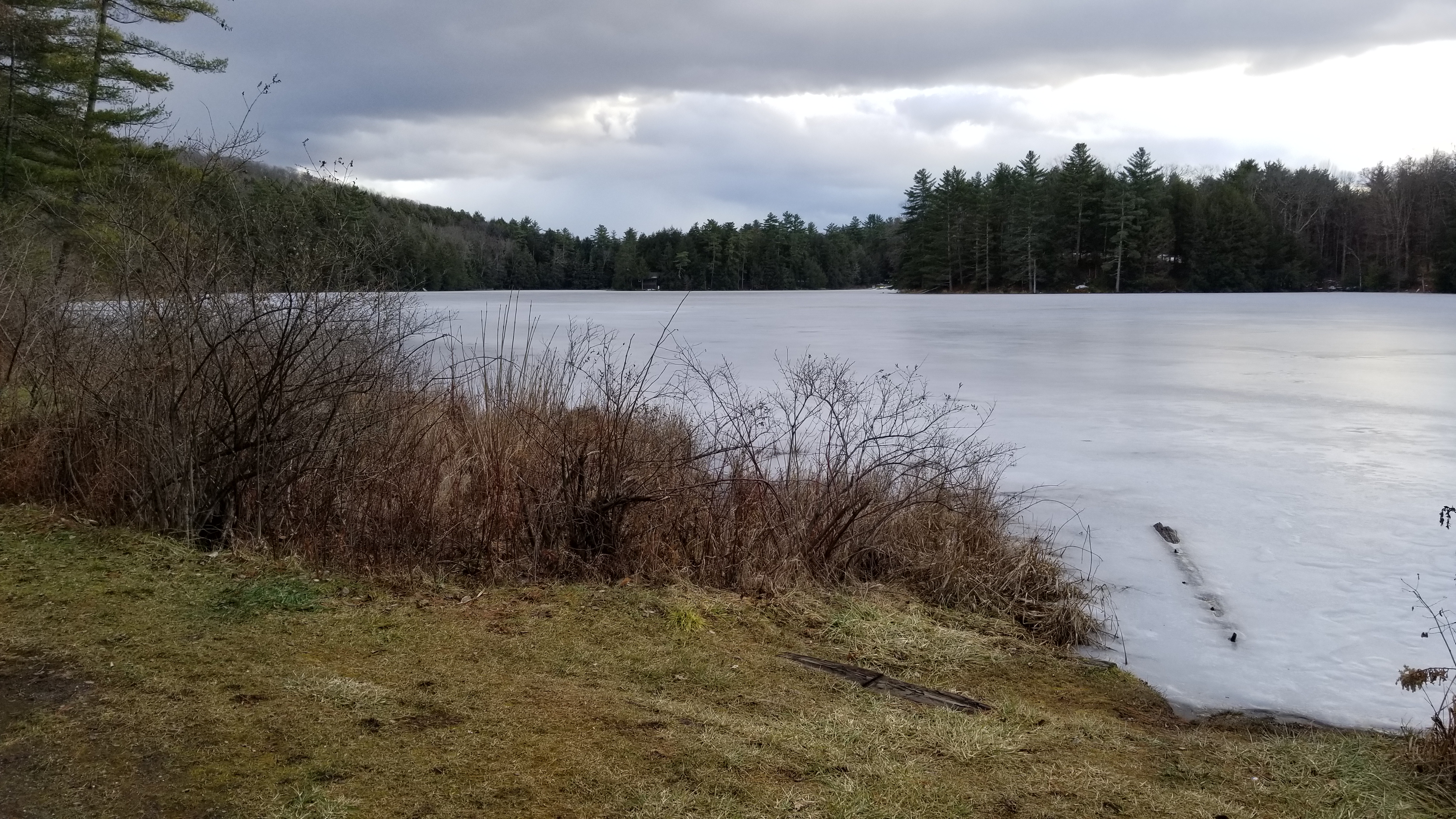 Half Moon Pond. 2019-12-15: This picture is of the pond from the camping area. There is also a nice trail up to "High Pond," which is a smaller, more isolated body of water.