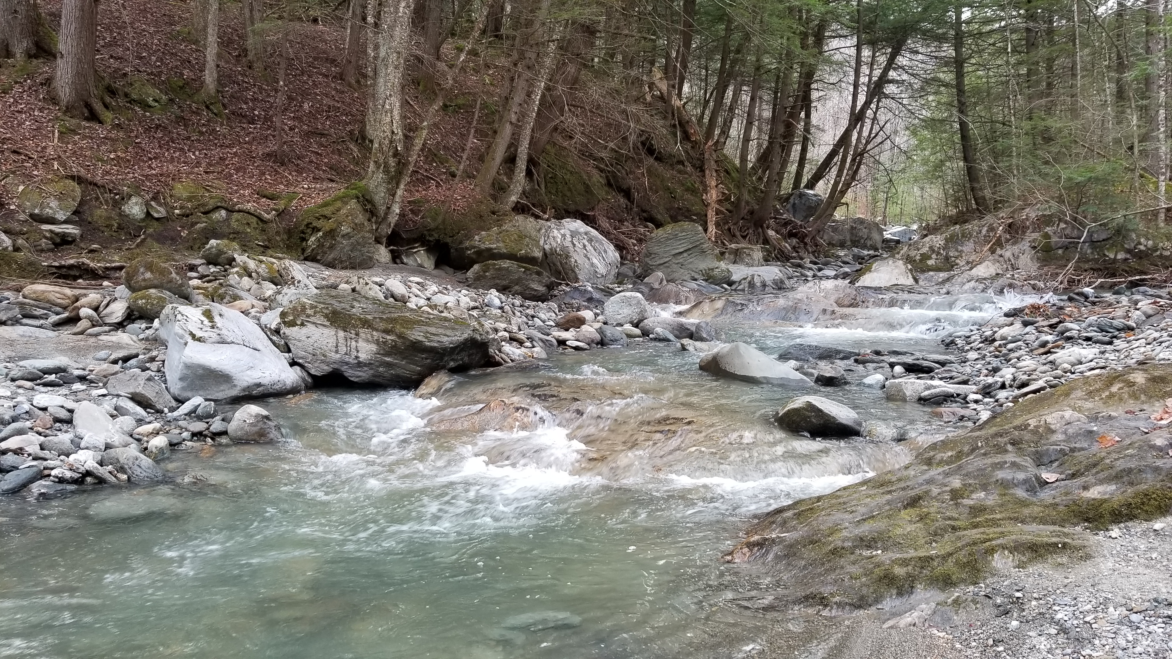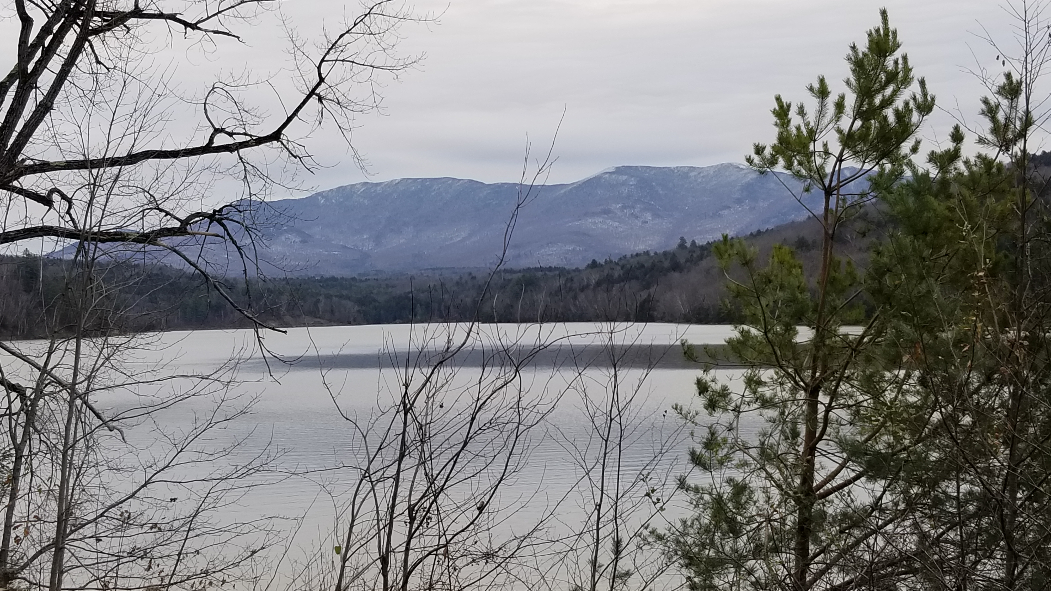 Little River. 2019-11-10: The park was technically closed (off season), but hiking, skiing, etc., are still allowed. My first picture is of the Worchester range across Waterbury Reservoir. My second picture is of Stevenson Brook from along the nature trail.