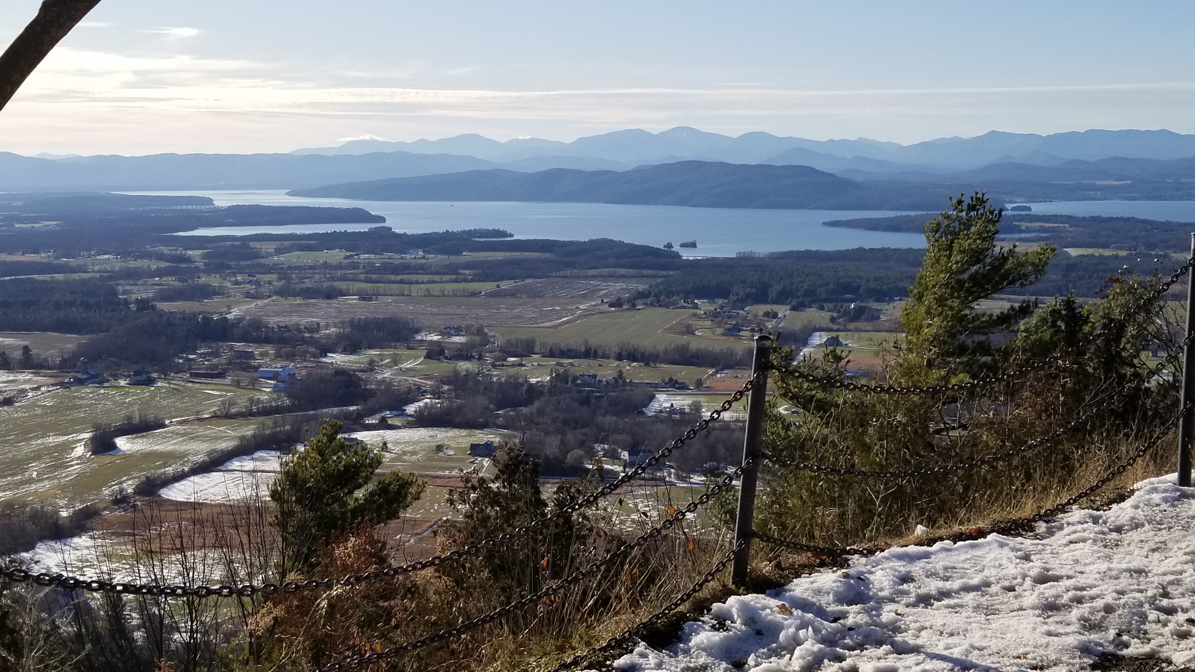 Mt. Philo. 2019-11-23: The road to the summit was closed to car traffic, but many people use it as a hiking path to the summit. I took a picture from the top, overlooking the Champlain Valley.