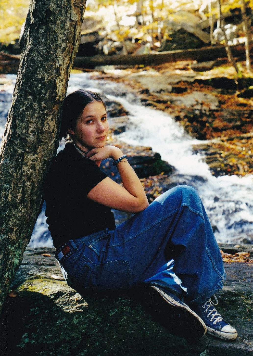 From the parking area there is a trail that heads upstream. Don't go that way. The falls are on the other side of the road and downstream from the bridge. There is an old road (now more like a trail) that leaves the main road just before the bridge. Down that road a few yards is a sign pointing to an informal trail that leads to the falls. The trail is short. The falls are close to the road. The footing is a little tricky in places, but not bad. It shouldn't present a problem for anyone except the most unsteady. I do suggest wearing the appropriate footwear. The forest floor can be muddy.